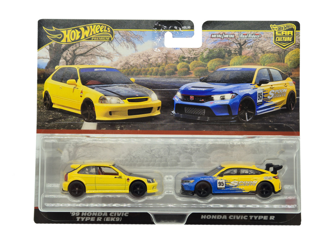 Modely Hot Wheels Premium sú oveľa kvalitnejšie spracované ako bežná „mainline“ séria. Okrem iného sa vyznačujú kovovým podvozkom, gumovými pneumatikami a kvalitnejším lakovaním. V sete Hot Wheels Premium – Duo Pack sa nachádzajú dve legendárne japonské hot-hatch ikony: Honda Civic Type R (EK9) ’99 a ďalšia verzia Honda Civic Type R. Modely v mierke 1:64 sú vyrobené v prémiovom prevedení s detailným spracovaním, gumovými kolesami a kvalitným lakom. Skutočný zberateľský kúsok, ktorý výnimočným spôsobom oslavuje tradíciu Type R. Perfektná voľba pre fanúšikov Hondy, JDM komunity a zberateľov Hot Wheels.