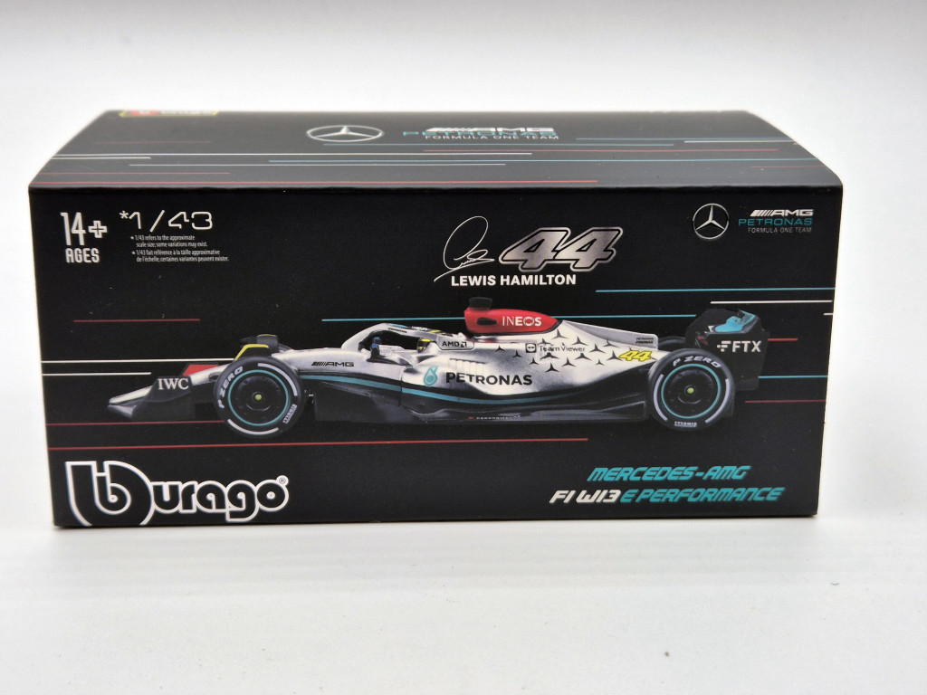 Mercedes - AMG Petronas F1 W13E #44 (2022) - Lewis Hamilton - s postavičkou pilota - Bburago - 1:43