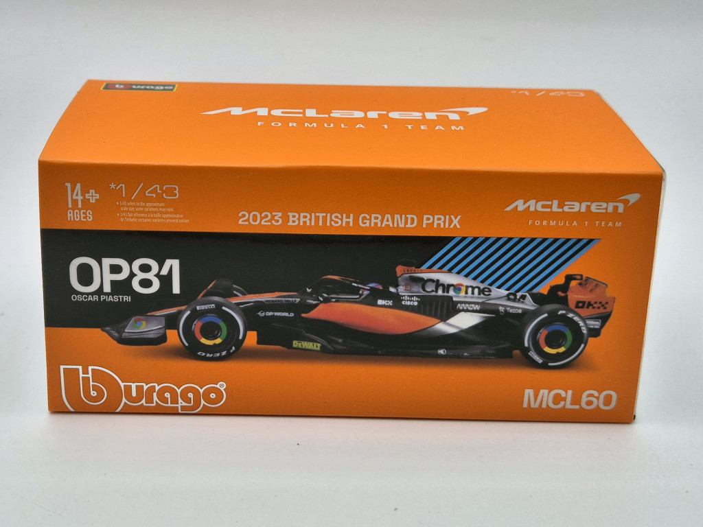 McLaren MCL60 F1 #81 (2023) - British GP 4th - Oscar Piastri - s postavičkou pilota - BBurago - 1:43