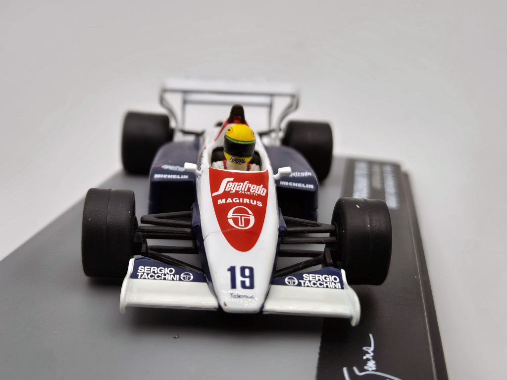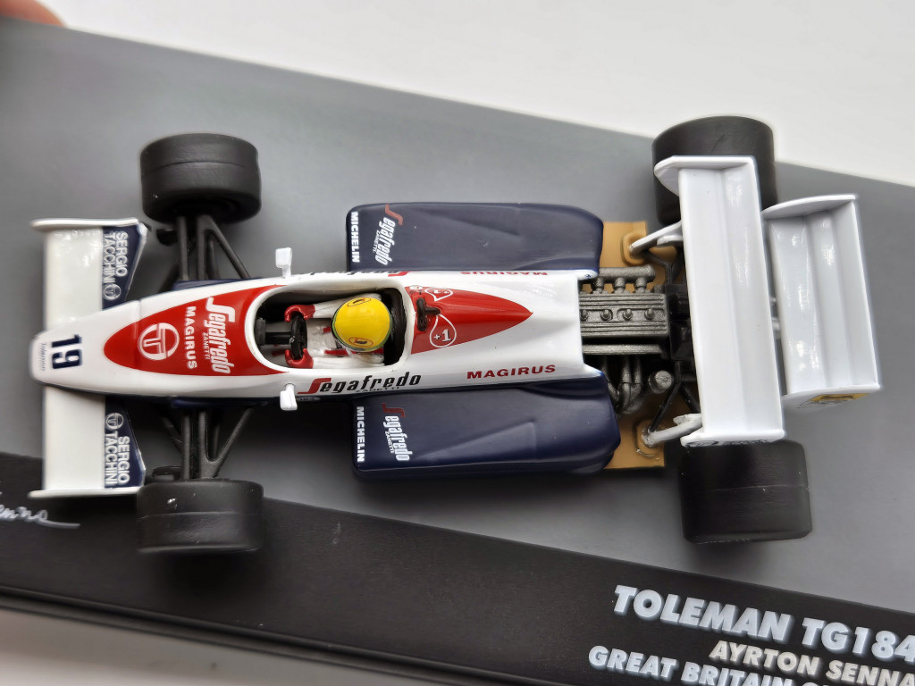 Toleman TG184 F1 #19 (1984) - Great Britain GP - Ayrton Senna - s postavičkou pilota - Edicola - 1:43
