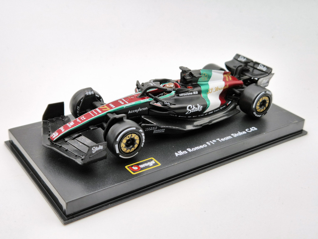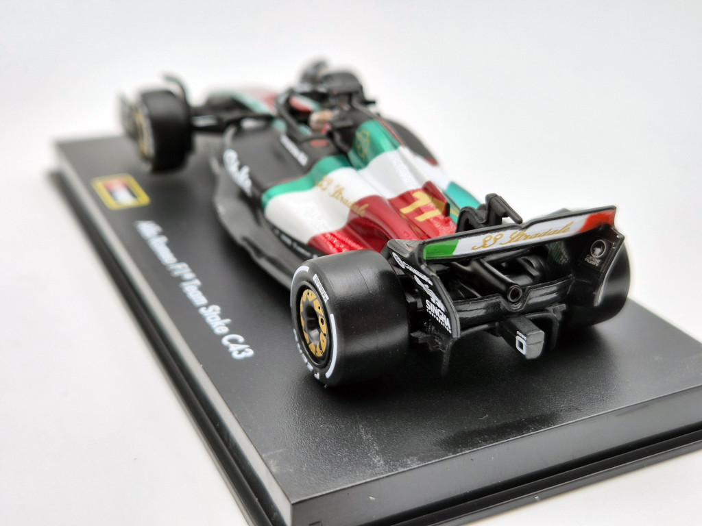 Alfa Romeo C43 F1 #77 (2023) - Monza Italy GP - Valtteri Bottas - s postavičkou pilota - Bburago - 1:43