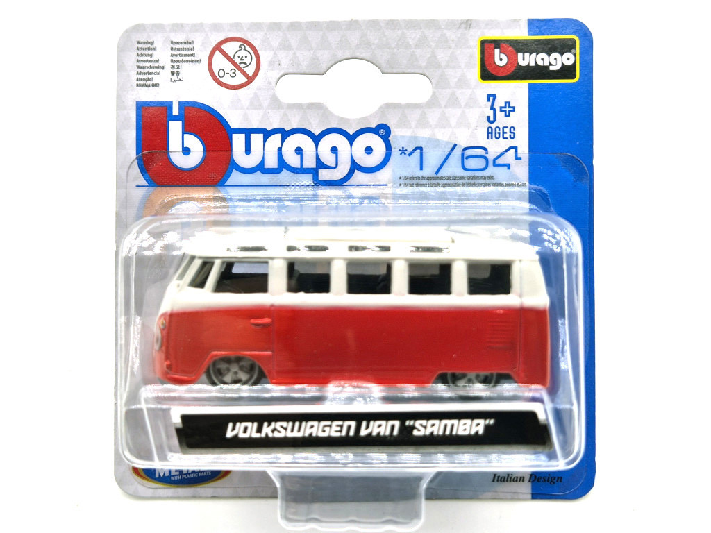Volkswagen VW T1 transporter Samba Minibus - červená - Burago - 1:64
