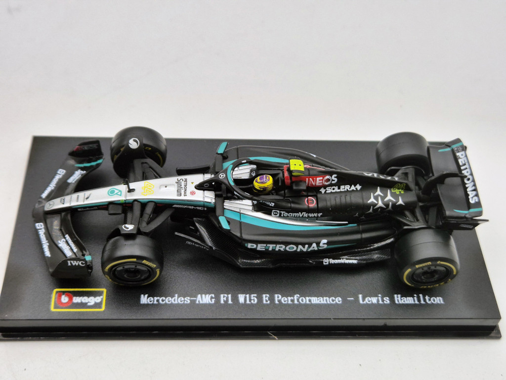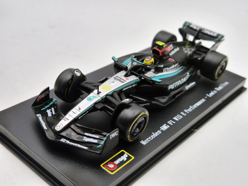 Mercedes GP W15 EQ Performance F1 #44 (2024) - Lewis Hamilton - s postavičkou pilota - Bburago - 1:43