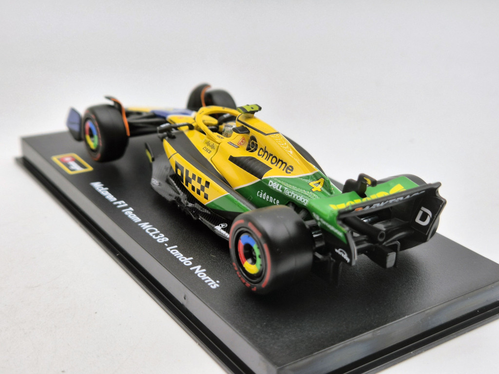 McLaren MCL38 F1 #4 (2024) - Monaco GP (Senna 30th Anniversary) - Lando Norris - s postavičkou pilota - Bburago - 1:43