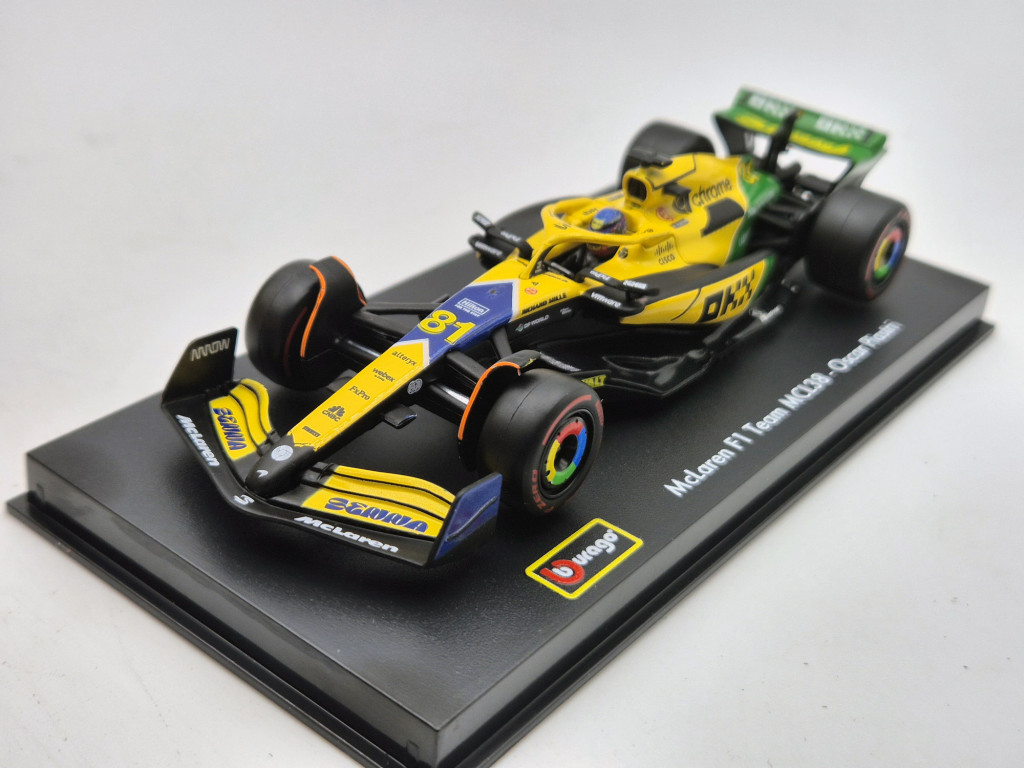 McLaren MCL38 F1 #81 (2024) - Monaco GP (Senna 30th Anniversary) - Oscar Piastri - s postavičkou pilota - Bburago - 1:43
