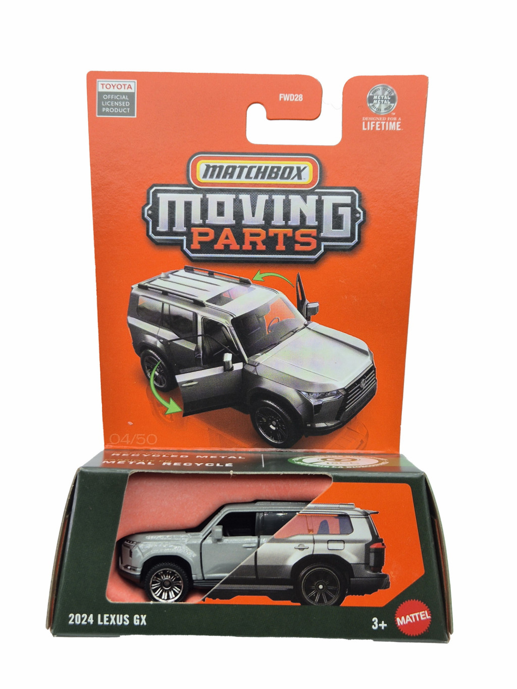 Model Matchbox Moving Parts – Lexus GX (2024) predstavuje v mierke 1:64 moderný luxusný terénny SUV, ktorý spája prémiový komfort s poctivými off-road schopnosťami. Lexus GX vychádza z osvedčenej techniky Toyota, no prináša ju v elegantnej a technologicky vyspelenej podobe.
