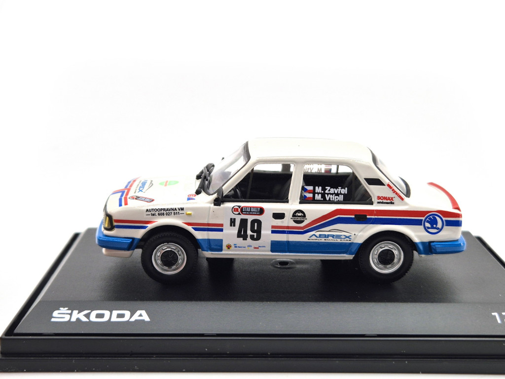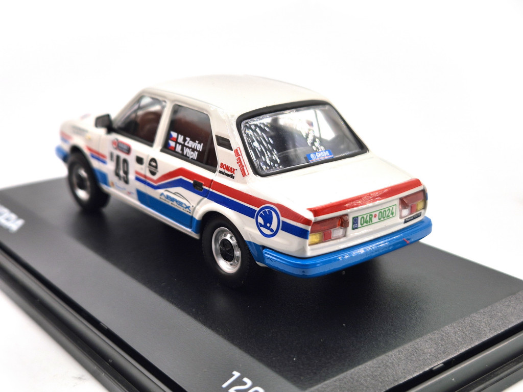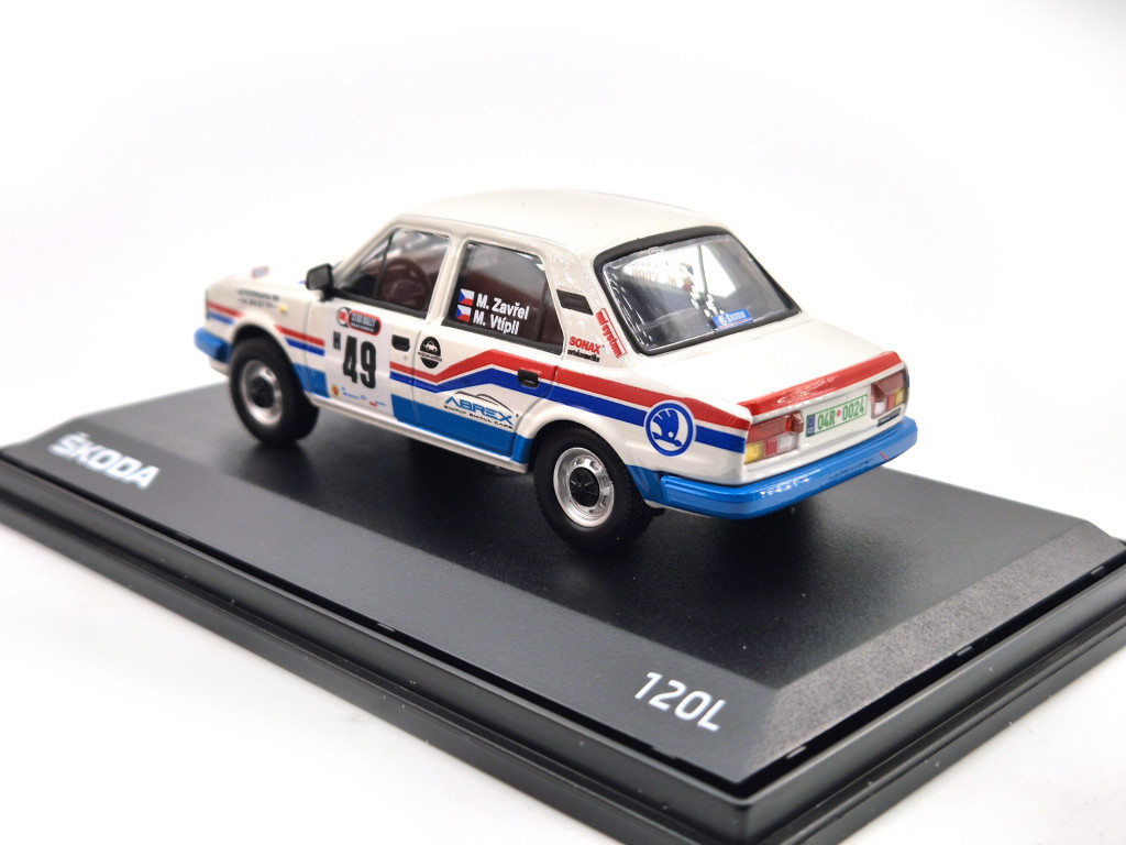 Model Abrex Škoda 120L v mierke 1:43 verne zachytáva vzhľad tohto historického rally automobilu.
